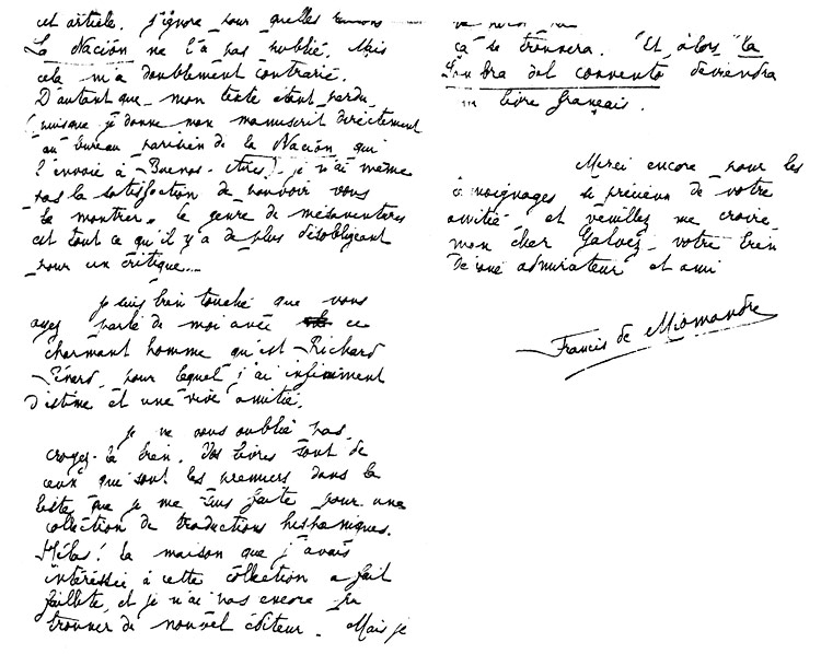 Correspondencia recibida por Manuel Gálvez, depositada en la Academia Argentina de Letras. (Selección)Francis de Miomandre, diciembre de 1923 |