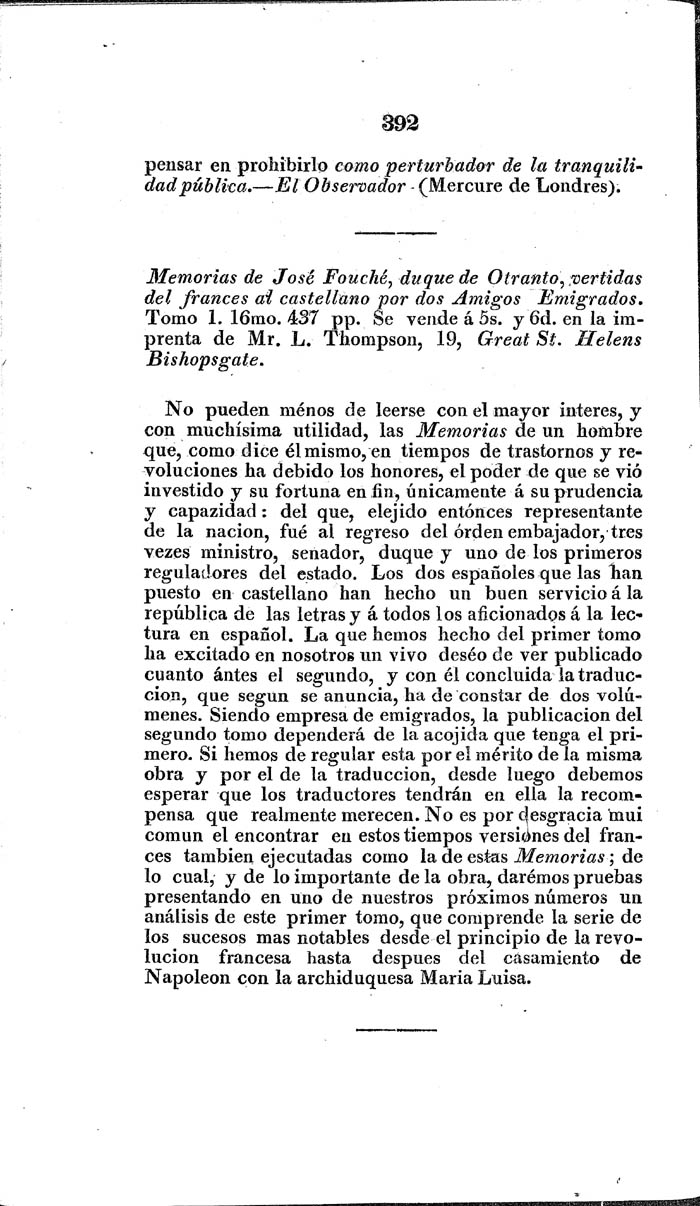Tomo V, número 25, abril 1826.